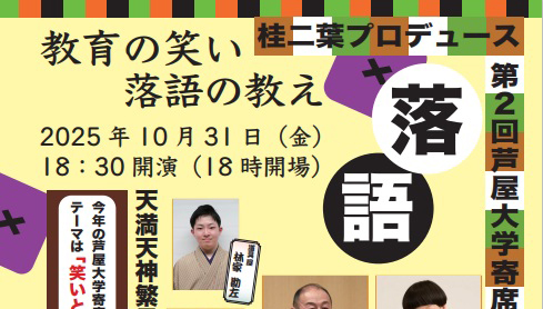教えと気づきの落語会 ~放送大学プレゼンツ寄席~ 11月6日(木)18:30~天満天神繁昌亭(大阪市北区天神橋) 月亭秀都「桃太郎」/林家愛染「電話の散財」/桂歌之助「稽古屋」~仲入~【鼎談】「教うるは学ぶの半ば」林家花丸・高島幸次(龍谷大学エクス... -