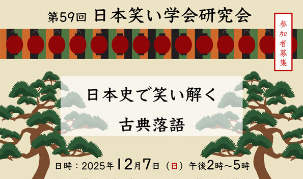 第59回 ⽇本笑い学会研究会 日本史で笑い解く古典落語 12月7日(日)14:00~17:00龍谷大学大宮キャンパス(京都市下京区七条通大宮東入大工町) 開会挨拶 コーディネーター 札埜和男(龍谷大学文学部教授)(1)龍谷大宮寄席「つる」浪漫亭瑠畔(久保貴... -