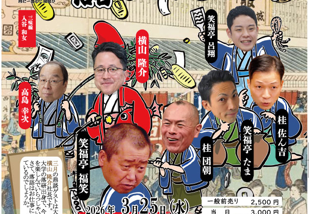 天神寄席3月席「儲かってまっか!」 3月25日(水)18:30~天満天神繁昌亭(大阪市北区天神橋) 笑福亭呂翔「江戸荒物」/桂佐ん吉「四人ぐせ」/笑福亭たま「つぼ算」/桂団朝「鐘釣り」~仲入~【鼎談】「落研の出身ですねん」横山隆介(大阪取引所(大証... -