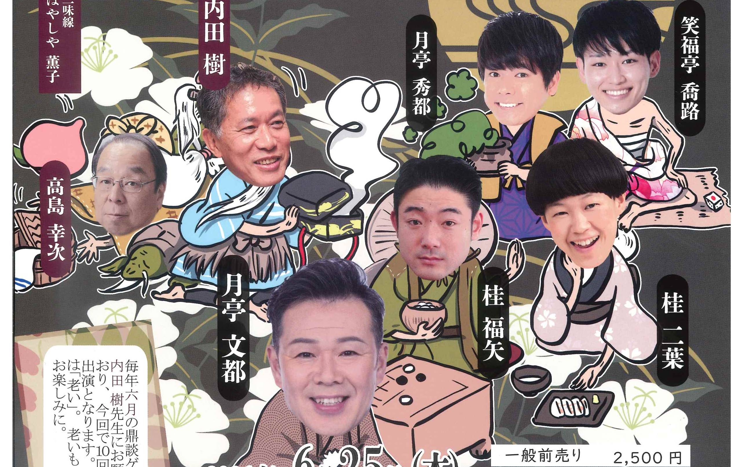 桂白鹿「牛ほめ」/桂福丸「書割盗人」/桂阿か枝「金明竹」/笑福亭鶴笑「抜け雀」~仲入~【鼎談】「館長が絵師を語る」菅谷富夫(大阪中之島美術館館長)・高島幸次(大阪天満宮文化研究所所長)・桂春若/笑福亭松枝「てれすこ」